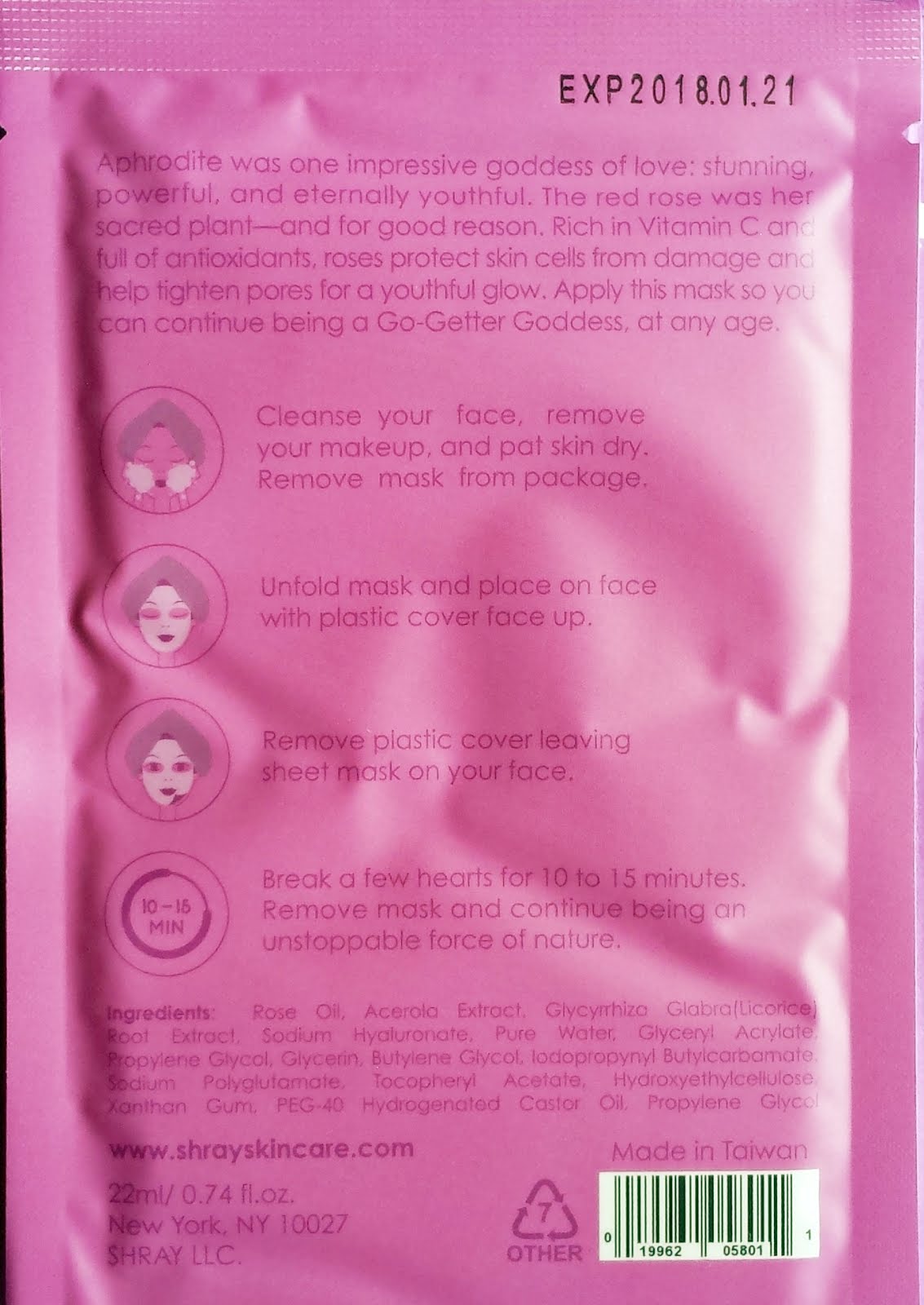 "Aphrodite was one impressive goddess of love: stunning, powerful, and eternally youthful. The red rose was Aphrodite’s sacred plant—and for good reason. Rich in Vitamin C and full of antioxidants, roses protect skin cells from damage and help tighten pores for a youthful glow. Apply this mask so you can continue being a Go-Getter Goddess, at any age.